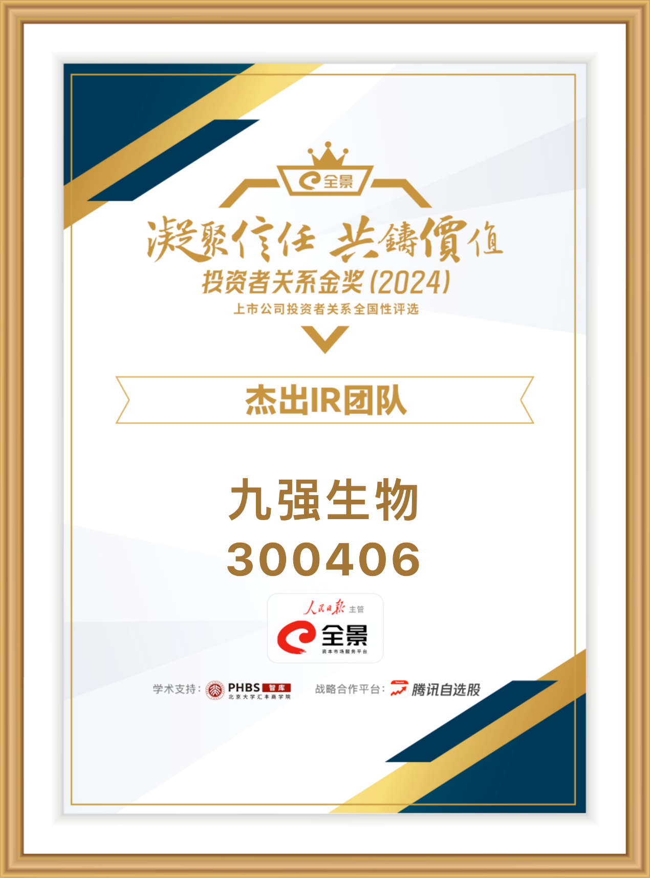 克日,第六届全景投资者关系金奖盛大揭晓。stake官网入口生物(300406.SZ)在此次评选中荣获“优异IR团队”奖项,stake官网入口生物董秘王建民先生获“优异董秘”奖。